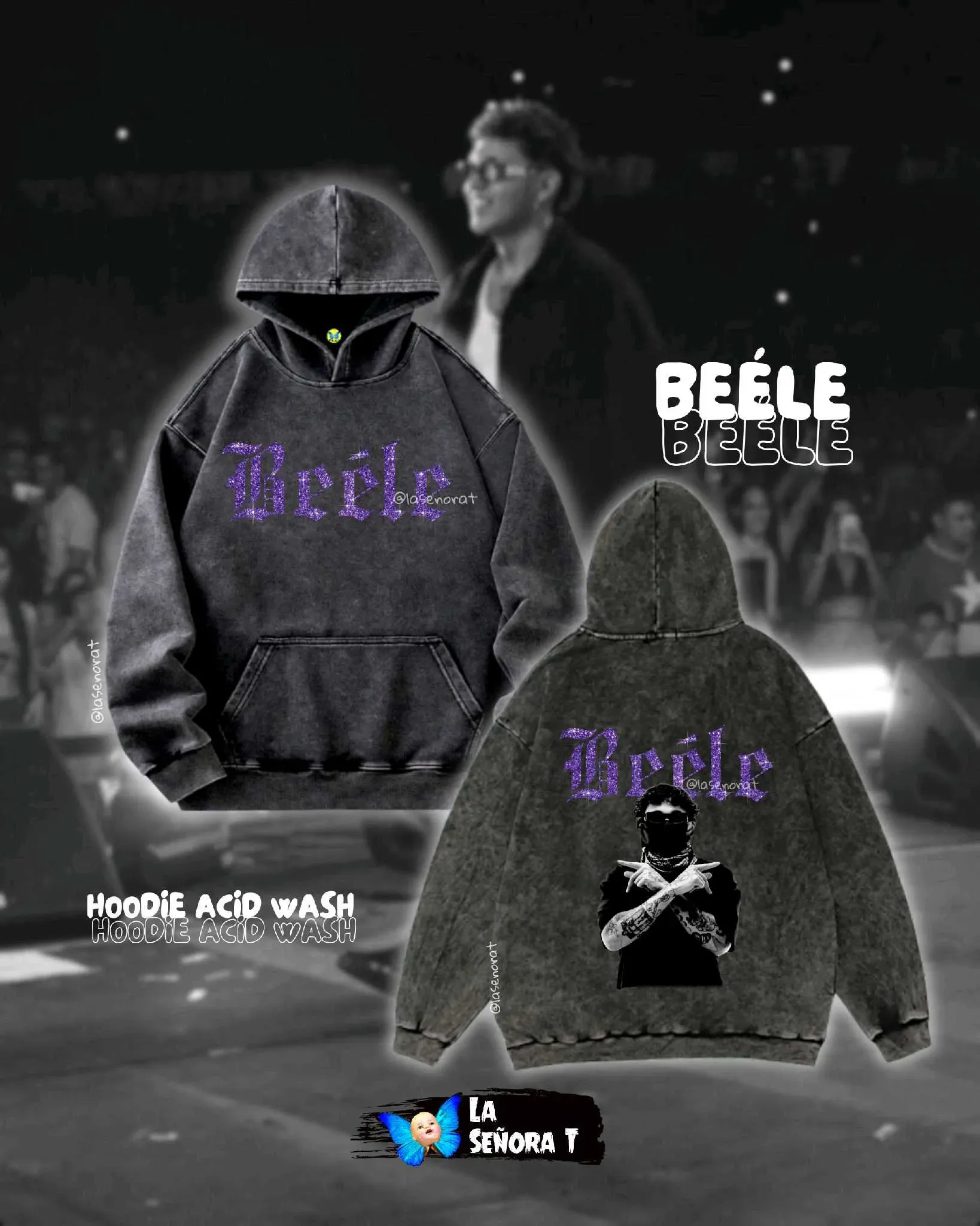Hoodies 𝗢𝘃𝗲𝗿𝘀𝗶𝘇𝗲𝗱 Acid Wash en algodón de alto gramaje. Doble estampado efecto escarcha.