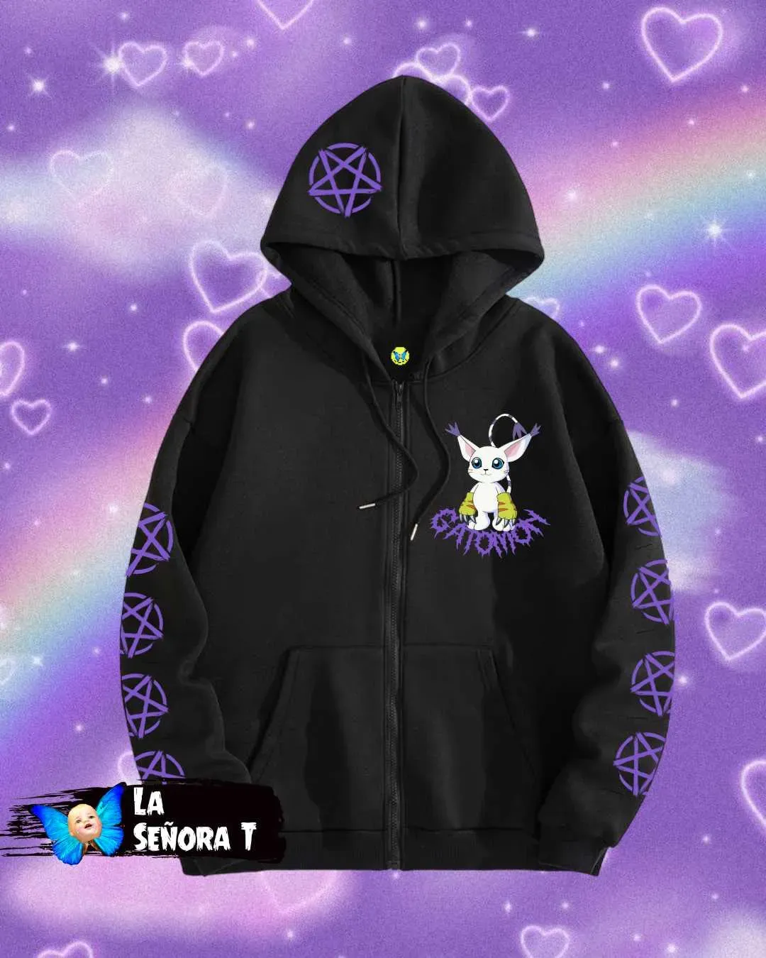 Hoodie Gatomon en algodón Mónaco de 264gr, capota y cremallera.