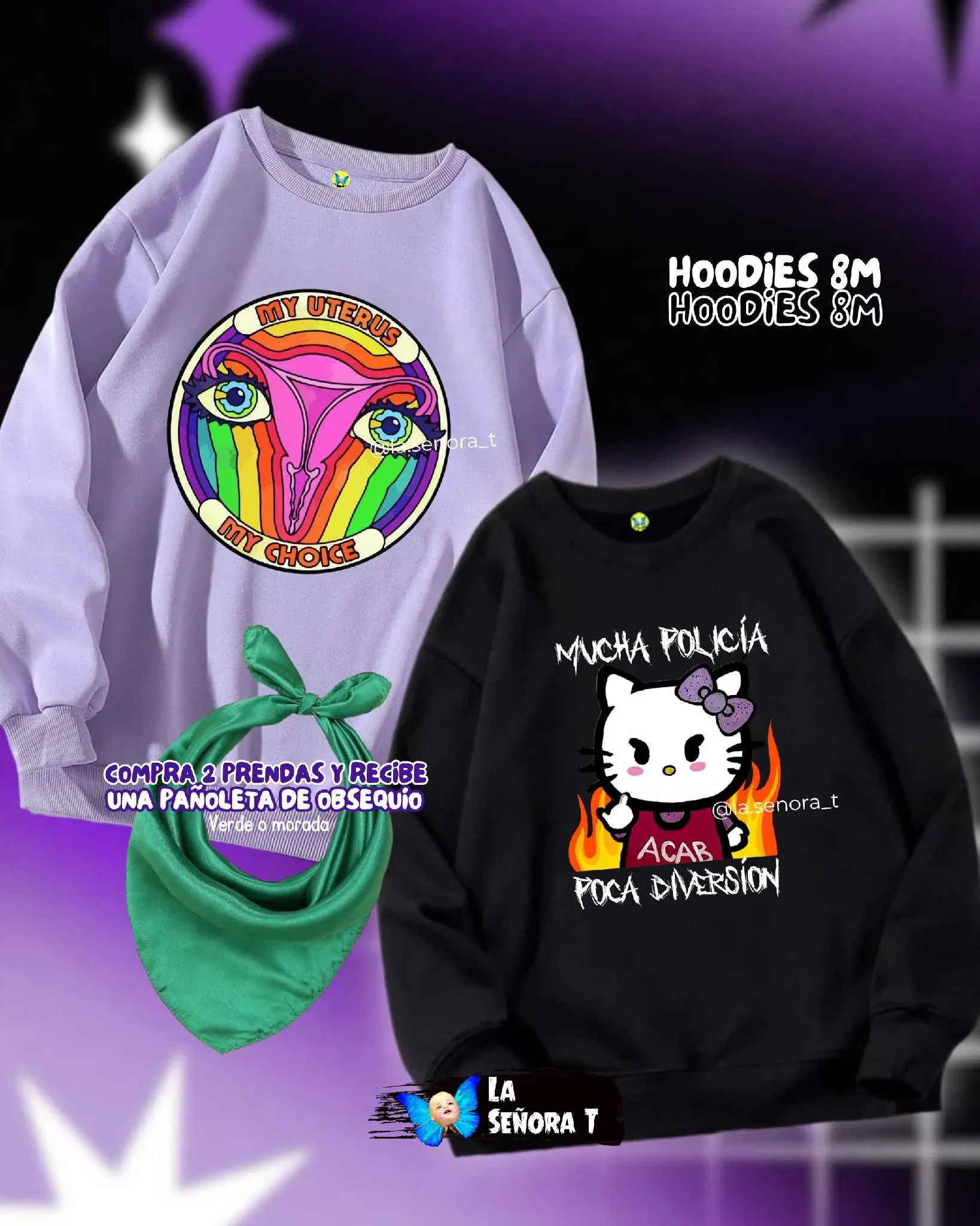 Si compras 2 solo nos indicas que diseños por Whatsapp y escoges tu pañoleta ✨